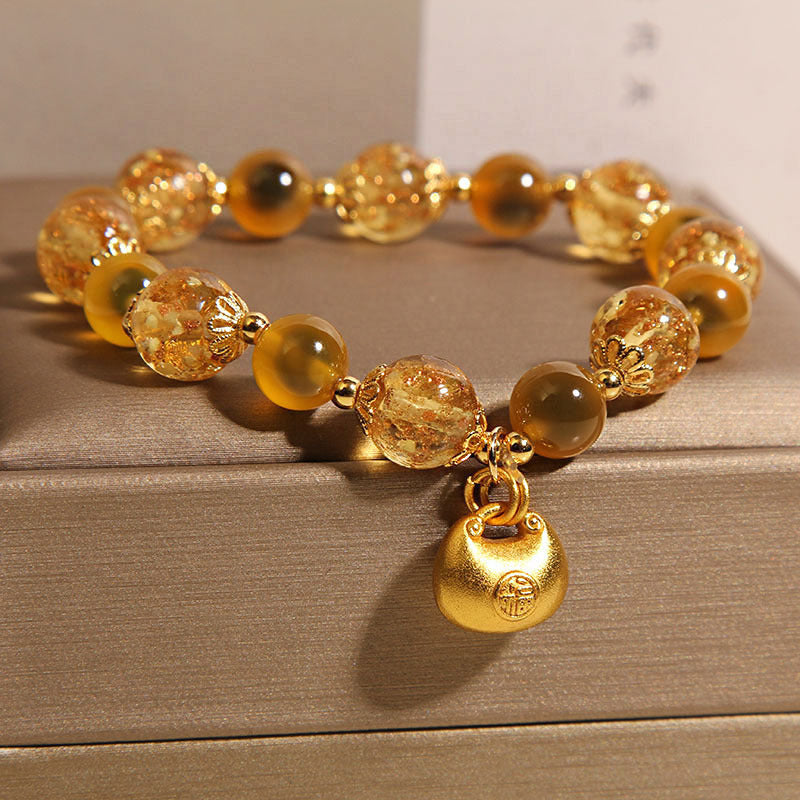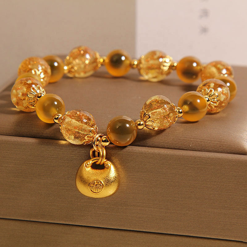Natural Yellow Sugar Heart Agate Crystal Bracelet For Women