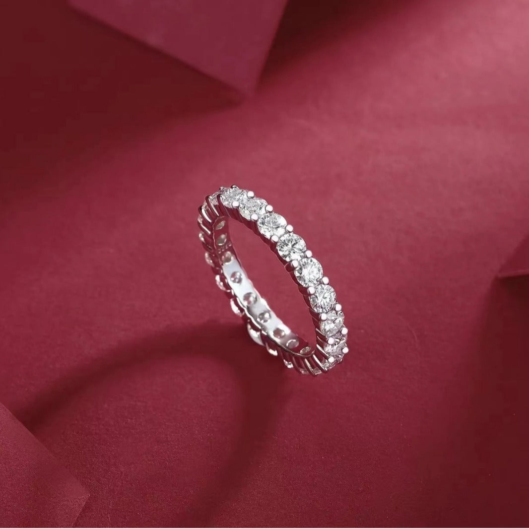 S925 Silver Row Diamond Ring Women's Inlaid